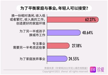 这届年轻人既是我行我素的独立个体,又是优秀的“家庭合伙人”。当与另一半的生育观产生分歧时,绝大部分参与调研的用户愿意两人商量寻找折中方案。为了创造更好的家庭环境,72.82%的人愿意做出一定程度的牺牲,平衡家庭与事业,如离开原本的城市工作、换一份收入或节奏压力不同的工作等。