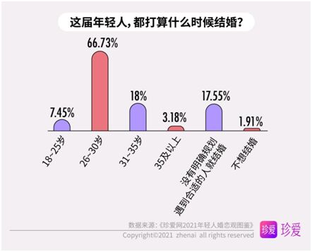 “结婚”仍然是被未婚青年们列入人生规划清单的一件大事,就结婚意愿而言,超过98%的人在调研中明确表示自己会步入婚姻,超过半数人认为26-30岁之间最适合结婚。